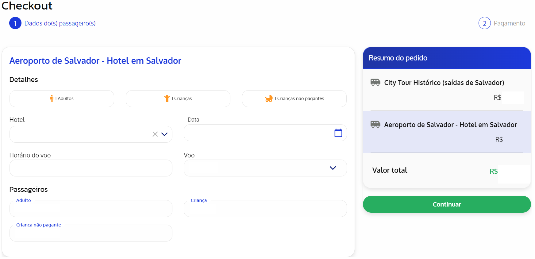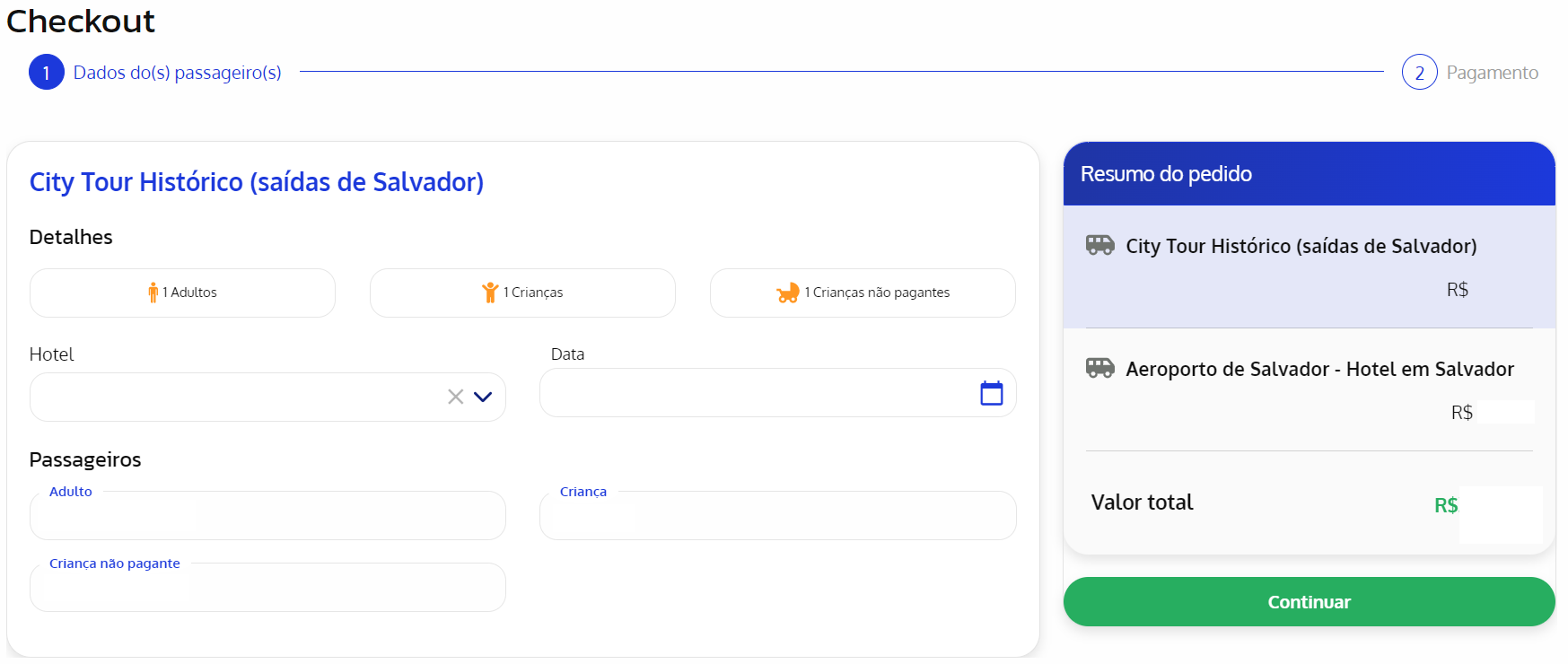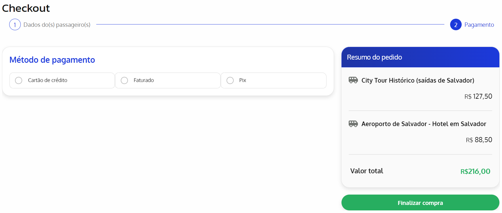 - Finalizar compra – faz a reserva e direciona para a página de Checkout.