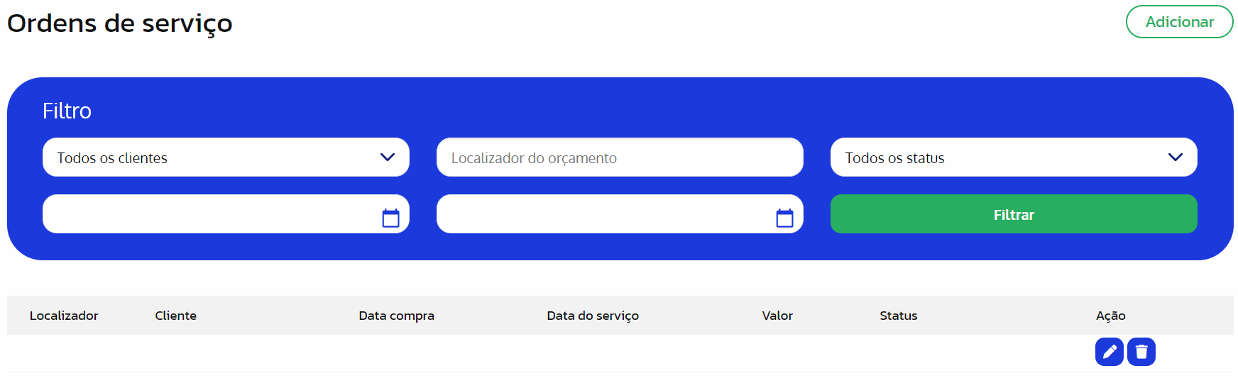 Clique na ‘Lixeira’ em ‘Ação’ para apagar a OS.