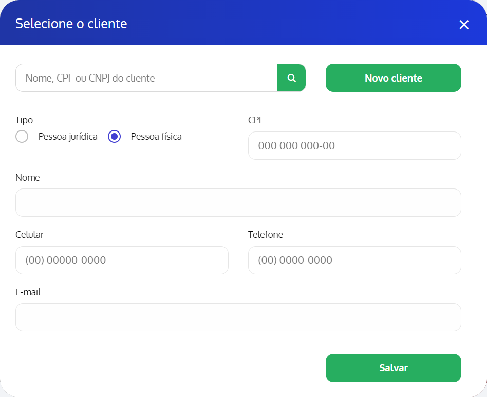 - Adicionar produto – vai para a página de seleção dos produtos.